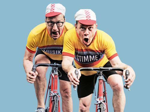 Die Welt des Radsportes hält viele Geschichten bereit. Les trois Suisses beschreiben sie auf ihre Art: mit Witz und viel Musik. Pascal, nebst Sänger und Gitarrist ein versierter Fahrradmechaniker, und Resli, Multi-Instrumentalist und Velofan, bespielen die Bühne in „Tandem“ zugleich als Hotelzimmer, Garderobe und Velogarage. Die tiefe Freundschaft der beiden „Hobby-Gümmeler“ hält auch unterschiedlichen Gewinnchancen und Konkurrenzsituationen stand. Das ungleiche Duo singt sich quer durch die Musikgenres und bedient sich verschiedenster Instrumente. Manch altbekannte Melodie findet in „Tandem“ eine neue, überraschende Form. Rund ums Zweirad gibt’s viele Geschichten zu besingen, aber auch das weibliche Geschlecht lässt bei Pascal und Resli Oden erklingen. Die unerreichbare Yolanda etwa, oder die schöne Wetterfee. Virtuos und nie um einen Spruch verlegen eifern Les trois Suisses auf der Bühne den Rad-Helden ihrer Jugendzeit nach: Coppi, Bartali, Kübler, Koblet und Co. Tricots, Lederhelme und Startnummern werden montiert, doch es kommen auch Zweifel auf. Kann man die Zeichen der Zeit so einfach wegradeln? Wie geht Mann mit Enttäuschungen, Schmerzen, rasanten Abfahren und mühseligen Aufstiegen um? Doch eines ist sicher: die Hoffnung macht als letzter schlapp. Und mögen sie auch den Pokal nicht gewinnen, so ganz sicher die Herzen des Publikums.