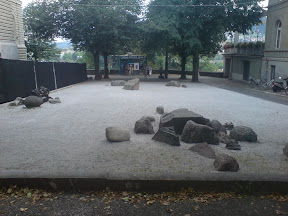Vorbei am Bundeshaus West am Weg zum Marzilibähnli stolpert der Gehende über eine Skulptur, die an eine Art japanischen Garten erinnert. Die dazugehörende Informationstafel klärt das interessierte Publikum darüber auf, dass es sich um das Werk „Das Gleichgewicht der Dinge“ des Berner Künstlers und Bluesmusikers George Steinmann (1992) handelt. Die fünf Gesteinsgruppen symbolisieren die Kontinente. Die Steine wurden aus fünf Kontinenten aus Gebieten, Landschaften, Tälern, Hügeln und Orten entnommen, welche den Namen Schweiz tragen. Am Ort, wo der Stein entnommen wurde, steht ein gelber Wanderwegweiser mit einer Distanzangabe nach der richtigen Schweiz. Die Bezeichnungen sind meist auf Ähnlichkeiten mit der richtigen Schweiz oder auf Schweizer Auswanderer zurückzuführen. Einer der Organisatoren des Werkes war denn auch die verblichenen Schweizer Verkehrszentrale, welche damit wohl auch Fremdenverkehrswerbung betreiben wollte.
