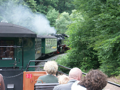 Nach dem Besuch des Moritzburger Schlosses fuhren wir heute mit dem Dampfzug Lössnitzergrundbahn von Moritzburg über den Damm des Dippelsdorfer Teiches durch eine sehr schöne Lanschaft nach Radebeul Ost.