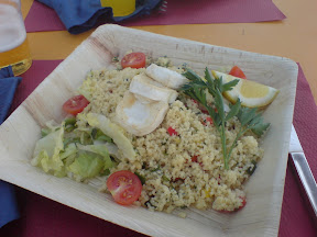 Gestern auf dem Weg zum Schwimmbad habe ich im Vorbeifahren mit Freud festgestellt, dass beim Seelein im Park Liebefeld ein provisorisches Bistro eröffnet wurde. Genaus so, wie ich vor ein paar Wochen in einem Blogartikel vorgeschlagen habe, obwohl ich mir jetzt nicht einbilde, dass ich der Einzig wäre, der diese Idee gehabt hätte. Heute Mittag habe ich mit meiner Tocher auch so gleich ausprobiert. Der Couscous-Salat mit Pinienkernen und lauwarmem Zigenkäse und die Bratwurst mit Pommes Frites schmeckten ausgezeichnet. Bier gibt es von der Brauerei Locher oder Egger (weiss nicht mehr so genau), Glacé zum Dessert von Luna Llena. Sehr empfehlenswert. Hoffen wir, dass das Bistro ein Erfolg wird.