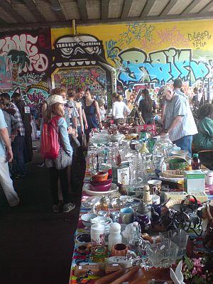 Über das Wochenende fand in Bern das Labor Schützenmatte statt. Ein Zeitungsartikel dazu hat mich auch darauf aufmerksam gemacht, dass am Sonntag auch der Reithalle-Flohmarkt stattfindet. Es ist Jahre her, dass ich das letzte Mal dort war, und ich dachte, dass sei eine gute Gelegenheit ihn wieder einmal mit der ganzen Familie zu besuchen. Zugegeben, dass Wetter hätte nicht besser sein können und der Andrang von Händlern und Besuchern vor und in der Reitschule war enorm. Das wild gemischte Angebot, welches neben viel Trödel auch Sammlerstücke umfasst, und das mindestens ebenso wild gemischte Publikum versprühten eine ganz tolle Stimmung, die mich an den Flohmarkt auf dem Vossenplein in Brüssel erinnerte, den ich auch gerne besuche. Auch die Kinder waren happy, da sich sich für wenig Geld mit Comics und Mode eindecken konnten. Für mich ist die Antwort auf die Frage, wie weiter mit der Schützenmatte, jedenfalls klar: jeden Tag Flohmarkt wie auf dem Vossenplein in Brüssel, oder zumindest fast jeden Tag. Der nächste Flohmarkt findet übrigens am 5. Oktober statt.
