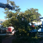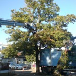 Heute morgen war es so weit. Genau wie im bekannten Schlager von Alexandra fiel der Ahorn an der Könizstrasse im frühen Morgenrot oder zumindest fast. Der Tod des Baumes war angekündigt. In den letzten Jahren fielen immer öfter Äste herunter und vor ein paar Tagen konnte man in der Zeitung lesen, dass die Gemeinde Köniz aus Sicherheitsgründen verschiedene Bäume fällen lassen muss, darunter auch der Baum vor unserem Haus. Dass der Baum geschwächt war, hat natürlich auch mit seinen misslichen Platzverhältnissen zu tun. Ringsum Asphalt und darunter noch Werkleitungen sind natürlich alles andere als ideal. Die Fällung des Baumes war ein beeindruckendes und auch ein bisschen schockierendes Schauspiel. Nur 20 Minuten hat der professionelle Einsatz gedauert, um den wohl etwa 70-jährigen Baum zu fällen. Immerhin besteht Hoffnung, dass im vorliegenden Fall in unmittelbarer Nähe ein Nachfolger gepflanzt werden kann.