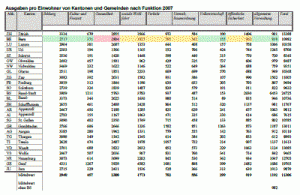 Quelle : IDHEAP/BADAC, Thematische Tabellen, Kantone, Öffentliche Finanzen und Umverteilung, Gesamtausgaben pro Einwohner Kantone und Gemeinden, 2007, konsultiert am 23.8.2012 http://www.badac.ch/db/db.php?abs=canton_x&code=T1.57&annee=max&arg=&lang=De#