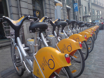 Anlässlich meines kürzlichen Besuches in Brüssel konnte ich feststellen, dass das Pariser Velib-System unter dem Namen Villo nun auch in Brüssel etabliert werden soll. An 180 Stationen warten etwa 2500 Fahrräder auf ihre Benutzer. Und Warten ist vermutlich tatsächlich ihre Hauptbetätigung, denn im Gegensatz zu Paris habe ich in Brüssel nur wenige Villo-Fahrer gesehen. Für Touristen ist das Bikesharing wegen den kurzen Distanzen im Zentrum und den eher schwierigen Verkehrs- und Strassenverhältnissen vermutlich nicht besonders attraktiv. Die trotz allem recht zahlreichen einheimischen Velofahrer lösen das Platz- und Diebstahlproblem indem sie zu einem grossen Teil Faltvelos benutzen. Die Dichte an Bromptons und anderen Faltvelomarken war jedenfalls beeindruckend. Der Vorteil ist, es ist leicht ein Villo-Bike auszuleihen.